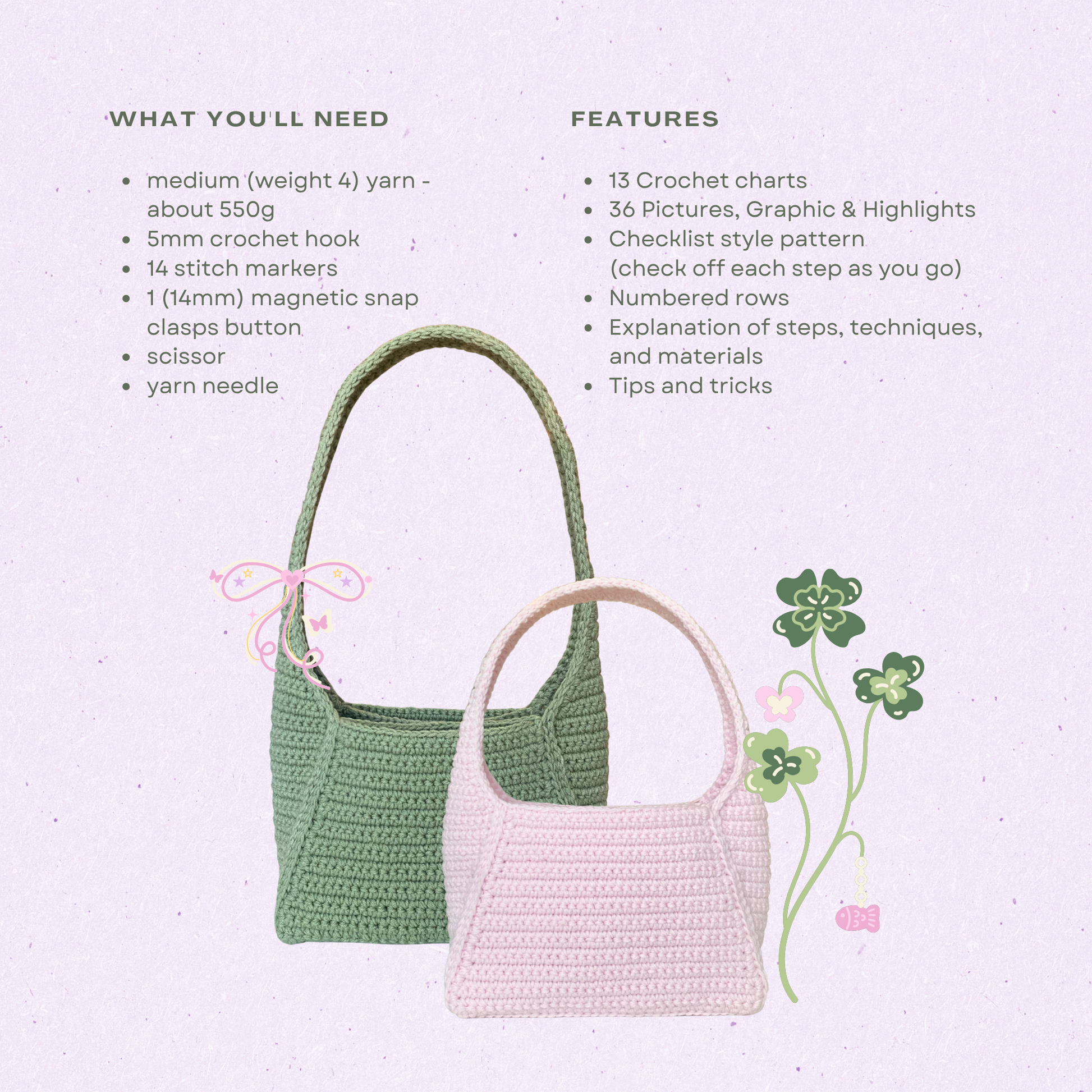 📚 This pattern is in English. You can make any size bag you’d like with this pattern. Need-to-know stitches: slip knot, slip stitch, chain stitch, and single crochet.